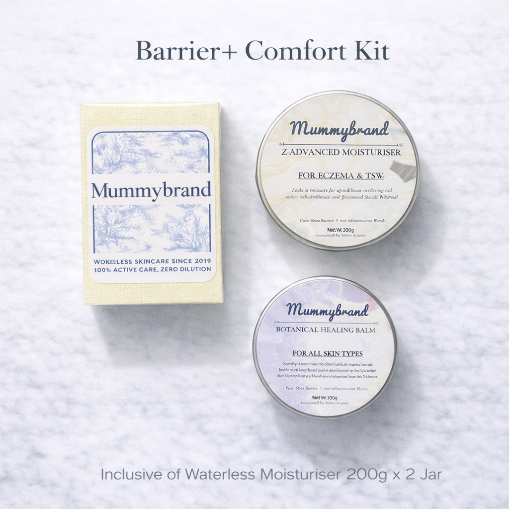 Mummybrand is among world's pioneers in true waterless skincare. For over 9 years, Mummybrand has focused on refining true waterless formulations for barrier-compromised skin — serving families who require more than cosmetic care.